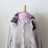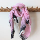 Japanese Extra Soft Woven Wool Cotton Scarf - Small - Baby Pink, Black, and White