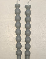 Set of two cute wavy taper candlesticks in the color natural, perfect for adding some fun to your home decor! Unscented. Comes in a little box tied with ribbon.