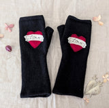 Upcycled Cashmere Fingerless Gloves Tattoo Heart - Black
