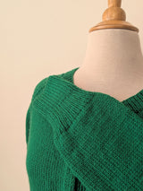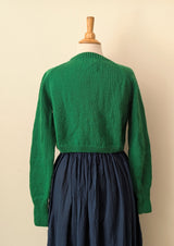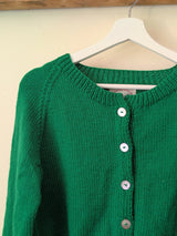 Hand Knit Wool Cardigan Sweater - Emerald Green