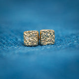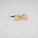 14k yellow gold post earrings, 5.1x5.1mm textured square, 4 brown diamonds 0.02ctw and 2 white diamonds 0.01ctw.About Ariko Jewelry: