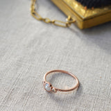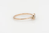 14k rose gold one of a kind ring with a 0.22ct rose cut grey diamond and 2 opals (0.04ctw), approx. 5x5.25mm center mount, 1.3mm width.