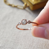 14K Rose Gold One-of-a-Kind Ring with Grey Diamond and Opals