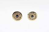 Timeless gold disc earrings adorned with diamonds on posts.