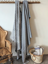 Top quality, thick cotton woven blanket with geometric patterns in a soft charcoal & white color palette. Great for those who are allergic to wool yet want an extra layer of warmth on the bed.