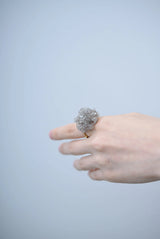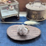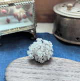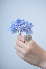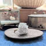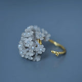 Made in Japan by Japanese craftsmen using vintage jewelry findings, this ring mimics hydrangea flowers on the stem. These bundles of blossoms are made of little beads and the ring is adjustable. No two are exactly alike.