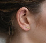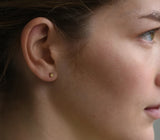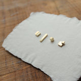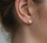 Brass studs. Square, cube, stacked squares, rectangle. Can be worn as mixed pairs or stacked in multiple holes.