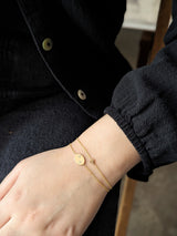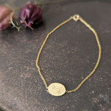 A solid gold bracelet set with 2 lovely diamonds twinkling away. Gorgeous on its own or stacked with any other bracelets.