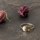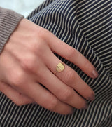 This solid 14K gold ring is adorned with two twinkling diamonds for a starry touch. Wear this ring on its own or in a stack.