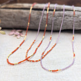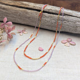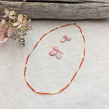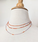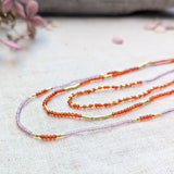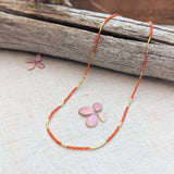 This beautiful necklace has tiny coral red carnelian beads paired accented with shiny gold vermeil beads. Perfect for wearing on its own for a pop of color, or for mixing and matching!