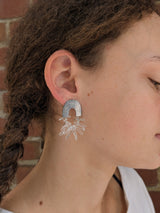 Add a bit of glam to any outfit with these unique earrings by Heather Guidero. Dimensional clusters of clear and frosted quartz crystals offer a dynamic contrast to the oxidized silver arches.