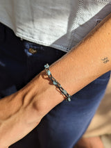 The aquamarine bracelet measures .25"W x 7.5"L.