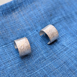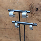 Elegant and simple hand-fabricated sterling silver medium hoops accented with a hammered texture. Sold by the pair and available in bright or oxidized silver (choose from drop down menu).