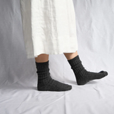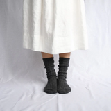 Made of the softest and most luxurious grade of Mongolian cashmere, these socks will keep your feet warm and cozy all season. In a timeless, warm charcoal color.