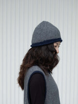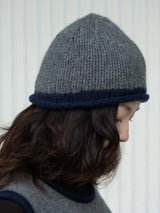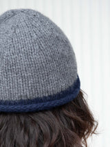 Cashmere Rolled-Edge Beanie - Grey with Navy Border