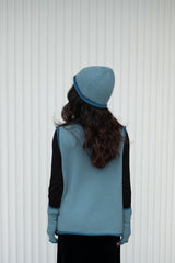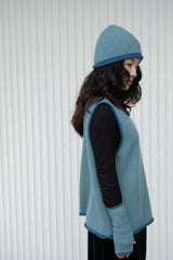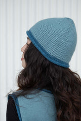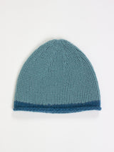Cashmere Rolled-Edge Beanie - Soft Blue with Teal Border