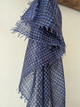 Cashmere Whisper Hatch Neckerchief - Blue and Navy