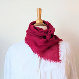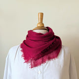 This versatile square scarf in a rich red is 100% felted featherweight cashmere. Airy, elegant, and super soft, this scarf is a perfect year round gift.