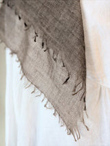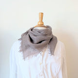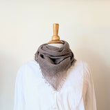 This versatile square scarf in the color heather vicuna is 100% felted featherweight cashmere. Airy, elegant, and super soft, this scarf is a perfect year round gift.