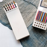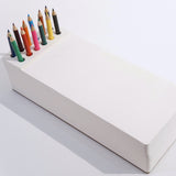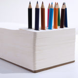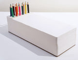 Oversized notepad with built-in holes to store writing utensils. Includes 12 colored pencils and 380 sheets of unruled, thick sketch paper. Perfect for doodles, unconventional to-do lists, and everything else imaginable!