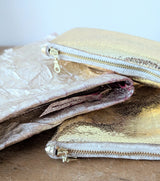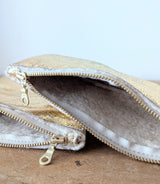 Cushy Gold Shearling Zip Pouches