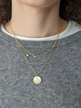 This dainty 14k yellow gold necklace features one 2.5mm extra white diamond set in the center and another 2mm extra white diamond. Wear this chic piece it on its own or layer it with more necklaces.
