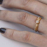 Inspired by a favorite trail covered in a blanket of ferns, this unique diamond ring is romantic and whimsical. Made of 14k yellow gold, this piece would make the perfect engagement ring for the nature lover in your life.