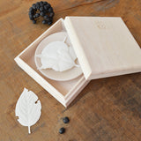 This special wooden box set comes with six individual leaves of HA KO Paper Incense and includes a felt mat and burning dish. Each leaf can be used as subtle potpourri, giving off fragrance for up to three months, or as incense that burns for approximately seven minutes while cleansing and deodorizing an area.
