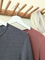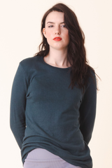 Hemp & Cotton crew neck pullover to wear year round. Precisely fitted with ease, it will relax with wear. Length hits at hip.  With the proper care of cold water washing and hanging to dry, it will last a decade or more.
