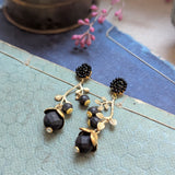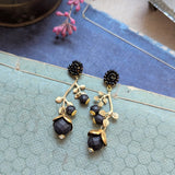 These beautiful branching drop earrings are inspired by the Japanese honeysuckle. Made in Japan with vintage jewelry findings from all over the world, and no two earrings are exactly alike.