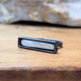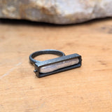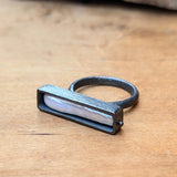 Horizontal Biwa Pearl Ring - Oxidized Sterling Silver