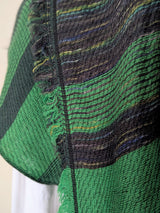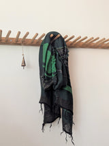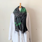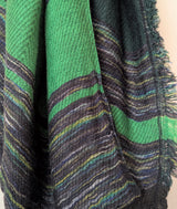 Japanese Extra Soft Woven Wool Cotton Scarf - Medium - Bright Green, Dark Green, and Olive