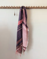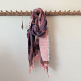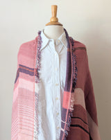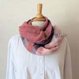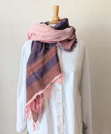 Japanese Extra Soft Woven Wool Cotton Scarf - Medium - Dusty Rose, Blue, White