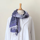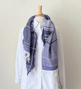 Japanese Extra Soft Woven Wool Cotton Scarf - Small - Lilac, Violet, and Light Gray