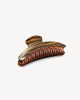 The largest claw clip in our assortment, designed to securely hold full updos and large volumes of hair. Handcrafted from fine Italian acetate with a double-walled construction and reinforced hardware. Recommended for long or thick hair of all types.