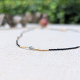 This gorgeous piece features a collection of labradorite and gold beads with black seed beads on the sides. Wear it on its own or mix and match!