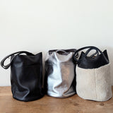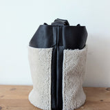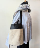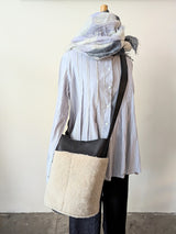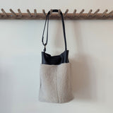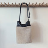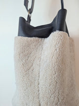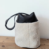 Large Bucket Bag - Shearling on Black Pebbled Leather - Adjustable Strap