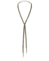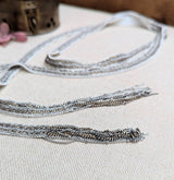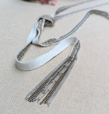 Long Ribbon Scarf Necklace with Chain Tassel - Off White