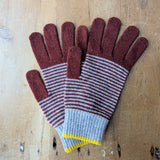 Men's Lambswool Gloves - Burnt Sienna Stripe