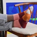 These cozy colorblocked men's socks are the perfect blend of fun style and function. Made of ethically sourced lambswool, they are a naturally insulated but still breathable treat for your feet.
