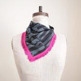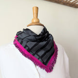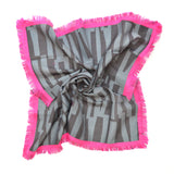 Mini Square Scarf - Geometric Gray with Fuschia Border