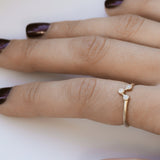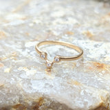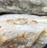 A sleek stacking 14k gold ring that comes in a one, two and three diamond version. This listing is for the three diamond ring. Smooth metal and clean lines allow for this beauty to look great alone or stacked. Add more rings from this series or different rings to create depth and texture.