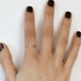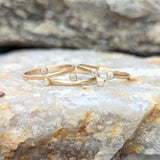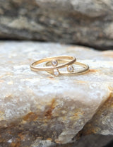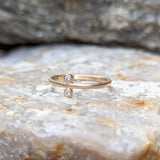 A sleek stacking 14k gold ring that comes in a one, two and three diamond version. This listing is for the two diamond ring. Smooth metal and clean lines allow for this beauty to look great alone or stacked. Add more rings from this series or different rings to create depth and texture.