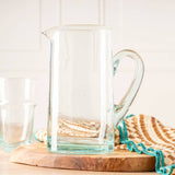 These simple but elegant cone-shaped glass jugs are perfect for pouring and serving your favorite beverages. The handmade nature of these pitchers is evident in the bubbles suspended in the glass itself, and the organic forms that the vessels take. No two are exactly alike. Made from recycled beer and wine bottles, these beautiful jugs are a second act for glass that would otherwise be sent to landfills.