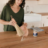 Handmade in Kentucky by designer/maker Cynthia Main of Sunhouse Craft.   Each piece is made by hand, weaving together crafting traditions of Appalachia, natural materials, and timeless design. Brooms are hand woven, with a non-electric process, and time and attention is paid to the details of each piece. Wood is sustainably sourced and harvested from nearby, and locally farmed, and natural fibers inform the design process. The end result are tools that bring back a sense of everyday magic into our daily work and chores.