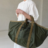 Super light weight, durable and water resistant nylon weekender bag or beach bag. Nylon webbing handles and shoulder straps. Zipper closure, one interior zipper pocket, one exterior zipper pocket