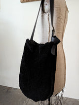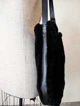 Tall shoulder bag made of very soft curly black shearling and Italian leather.