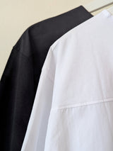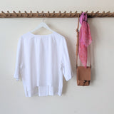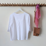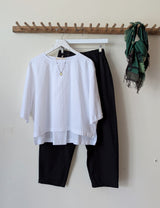A modern take on the oversized t-shirt, this top features an organic cotton jersey upper and mid length sleeves. The body panels are crafted from crisp poplin, with box pleat to the back to create a clean silhouette, and a split staggered hem. Effortless, lightweight and comfortable! Also comes in black.