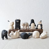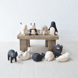 A small menagerie of wooden animals has taken over the shop and brings us joy daily with their whimsical expressions and body postures!  Each animal is hand crafted from natural Albizia wood which is one of the fastest growing tropical trees. Each piece is hand carved and hand painted by skilled artisans in Bali.