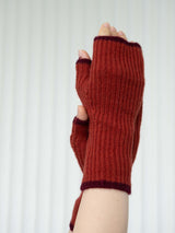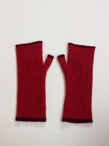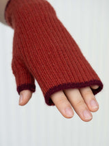 Ribbed Cashmere Fingerless Gloves - Red with Burgundy Border